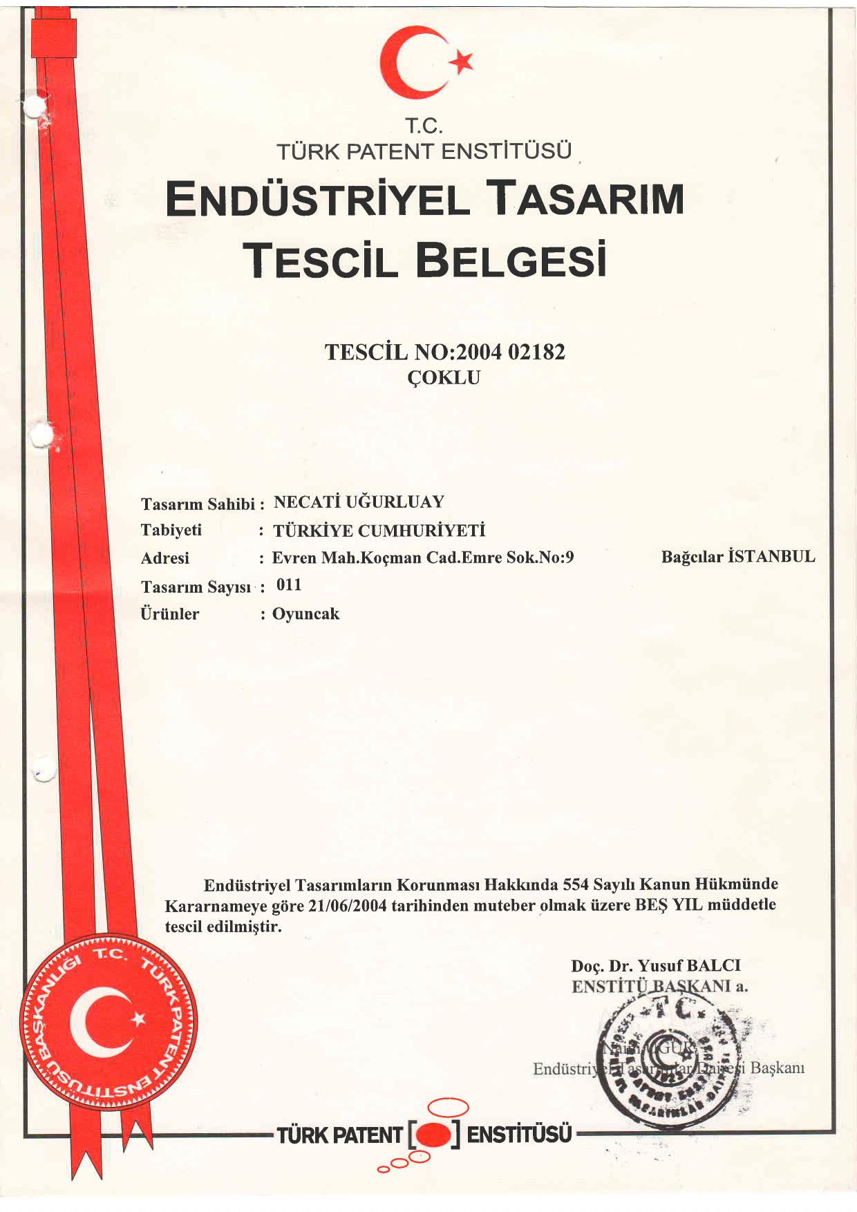 Tasarım Tescil Belgesi